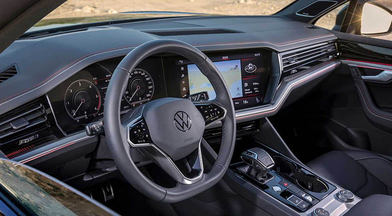 The 2022 VW Touareg can be had in any of the four available drivetrains. These include two V6 TDIs, a V6 TSI, and a plug-in hybrid V6 TSI. The plug-in hybrid model delivers the best performance, as its powertrain is capable of producing 375 horsepower (280 kilowatts) and 442 pound-feet (600 Newton-meters) of torque. Whatever engine you choose, it will send power to the wheel via an eight-speed automatic transmission. The all-wheel-drive system is standard.